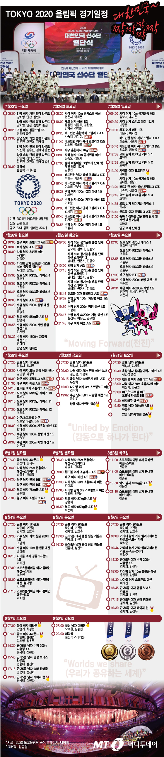 8강전은 모두 같은 날인 7월 31일 토요일에 1시간 간격으로 펼쳐지는 만큼 4강전에 올라갈 팀이 그날 정해지는데요, 멕시코와 맞붙게 되는 한국팀 경기가 가장 늦은 저녁 8시에 진행됩니다.