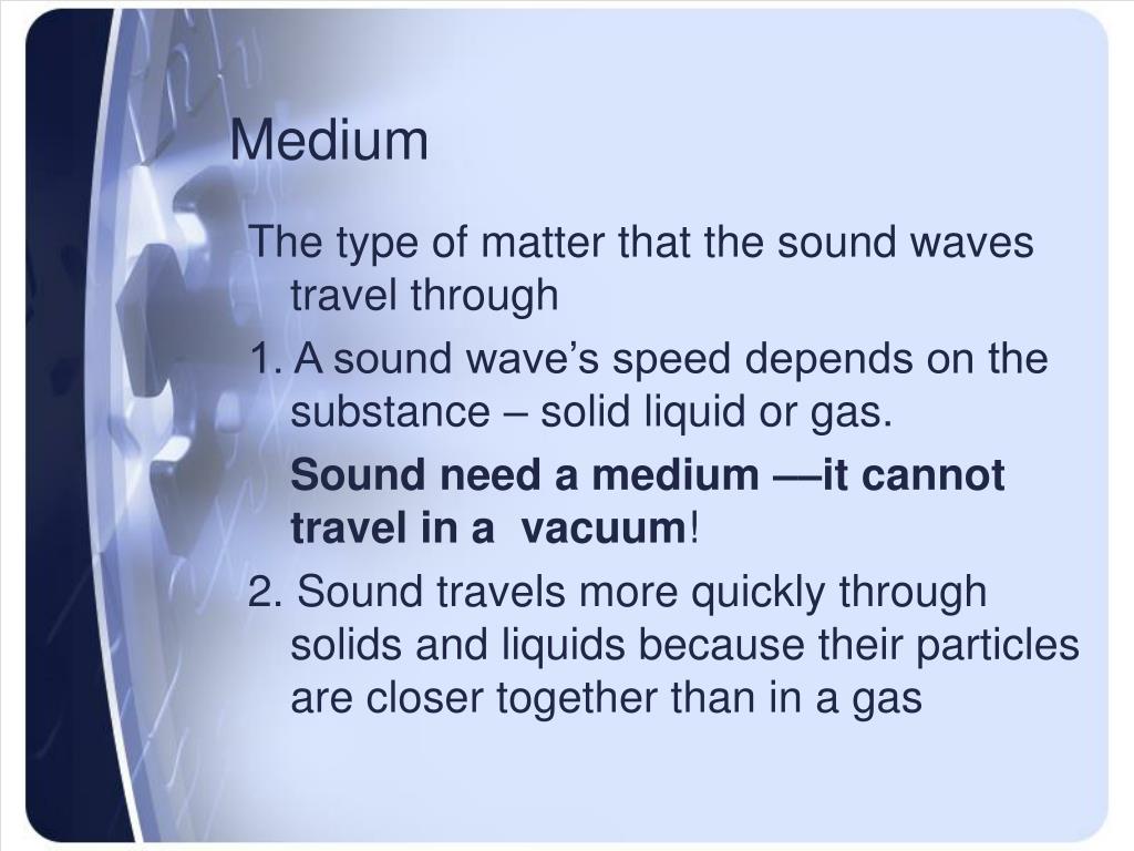 Sound travels at different speeds depending on what it is traveling through how fast does sound travel. Sound waves need to travel through a medium such as solids, liquids and gases.